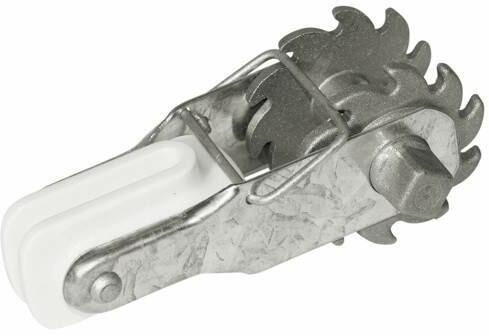 Fogazott huzal feszítő - erős acélból készült feszítő, - ideális tartósan telepített villanypásztor rendszerek acél drótjainak/huzaljainak kifeszítéséhez, - szigetelő csatlakozással ellátva.