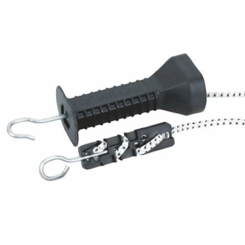 Rugó nélküli kapu szett Villanypásztor rugó nélküli kapu szett, amely a komplett kiépítéshez szükséges elemeket tartalmazza. Használatával nincs többé rugóba akadó farok vagy sörény! - 1 db műanyag rugalmas szalag - 1 db fekete műanyag kapu markolat kampóval - 1 db facsavaros szigetelő a kapu rögzítéséhez, - 1 db gyűrűszigetelő. Kétféle méretben kapható: - 3 és