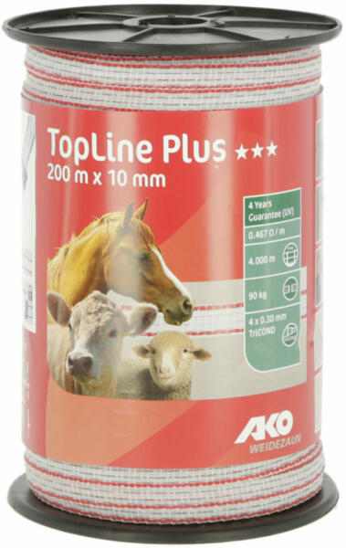 AKO Toplineplus villanypásztor szalag 200m, 10mm, fehér/piros