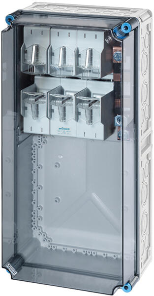 HENSEL Mi 6477 Mi NH késes biztosító szekrény (2000782) Termék információ: 1 x NH 2, 400 A, késes biztosítóaljzat, 3 pólusú A gyűjtősínek névleges árama 630 A Csak kombinációban Csatlakozás M 10 (a kapocstechnikát ld. a Műszaki adatoknál) PE- és N kapcsok: egyenként 1 x M 10 csatlakozás Bevezető kapocs nélkül Az N vezető a fázisvezetőkkel azonos áramterhelhetőség