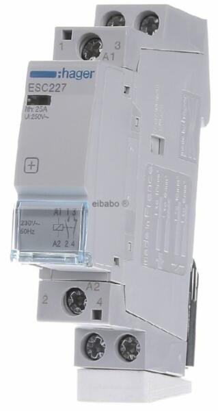HAGER Mágneskapcsoló, 1Z+1NY, 25A, 230V AC, moduláris (ESC227)