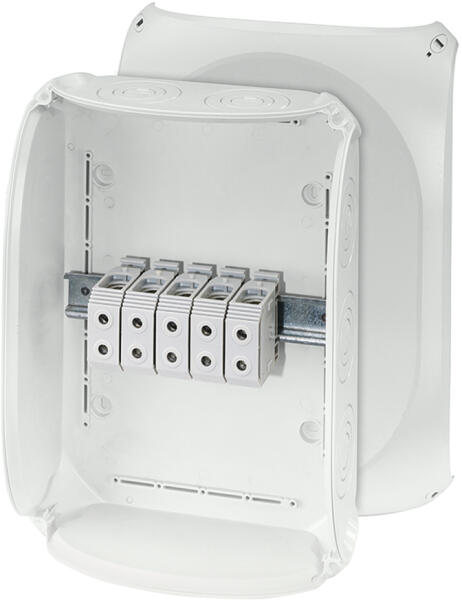 HENSEL DK 5055 G kábelösszekötő doboz (62000163) Termé kinformáció: 16 50 mm2, Cu, 3~ Kapcsokkal, pólusonként 2 db csatlakozással 5 pólusú, pólusonként 6 x 16 mm2 s, 4 x 25 mm2 s, 4 x 35 mm2 s, 4 x 50 mm2 s 2 db M 32-es kábelbevezetés a doboz alján Kábelbevezetés kikönnyítéseken keresztül, AKM-et külön kell rendelni A fedélzáró segédeszköz nélkül plombálható Küls