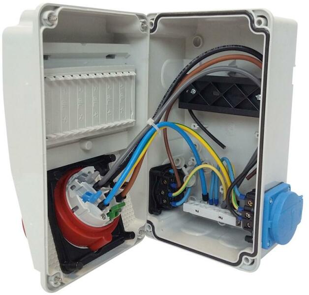 TP ELECTRIC Ipari doboz szerelt 130x220 1x(5P16A) + 2x(2P+F) oldalsó IP44 VEZETÉKELVE(3318-002-5000) (TP-3318-111-0001) Termékinformáció: Anyaga: műanyag Méret: 130 x 220 x 80 mm 1x(5P16A)+2x(2P+F) El őlapra szerelt: 1 x ( 5P16A) beépíthető dugalj Oldallapra szerelt: 2 x ( 2P+F ) háztartási dugalj IP védettség: IP 44 Modulok száma: 6 db Vezetékek keresztmetszete: 1 x 2,5 mm2 Névl