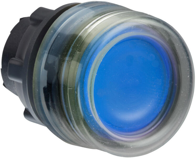 Harmony műanyag világító nyomógomb fej, Ø22, visszatérő, védősapkás, beépített LED-hez, kék Schneider ZB5AW563 Harmony műanyag világító nyomógomb fej, Ø22, visszatérő, védősapkás, beépített LED-hez, kék