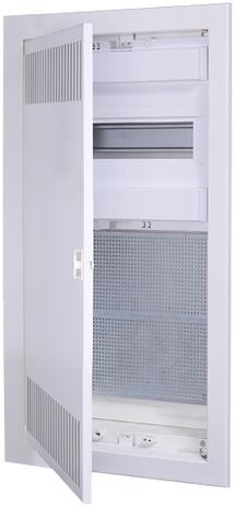 TEHNOPLAST Süllyesztett media-IT elosztódoboz, 3/1 soros (THP-U36-3-1-EP) Termékinformáció: Anyaga: doboz alj : ABS, keret: önoltó anyag, ajtó: fém Méretek: 592 x 346 x 92 mm Modulok száma: 12 + 2 PE, N csatlakozó: 2 x 10 IP védelem: IP30 Doboz alj izzóhuzal tesztje: 650°C / 850°C Ajtó izzóhuzal tesztje: 960°C Megengedett hőmérséklet: -25°C / +60°C Névleges feszültség: 4