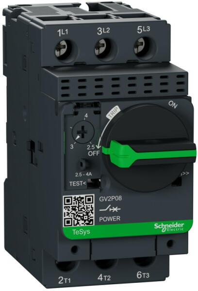 TeSys GV2 Termikus-mágneses motorvédõ megszakítók 0,37 … 15 kW-ig Kisméretű termikus-mágneses motorvédõ megszakító 0,37 … 15 kW-ig Jellemzők Kézi vagy helyi vezérlés a motorvédő önálló használatakor, automatikus és távvezérlés mágneskapcsolóval együtt használva Motorvédelem biztosítása a megszakítóba épített termikus-mágneses eszközökkel Az áramütés-v