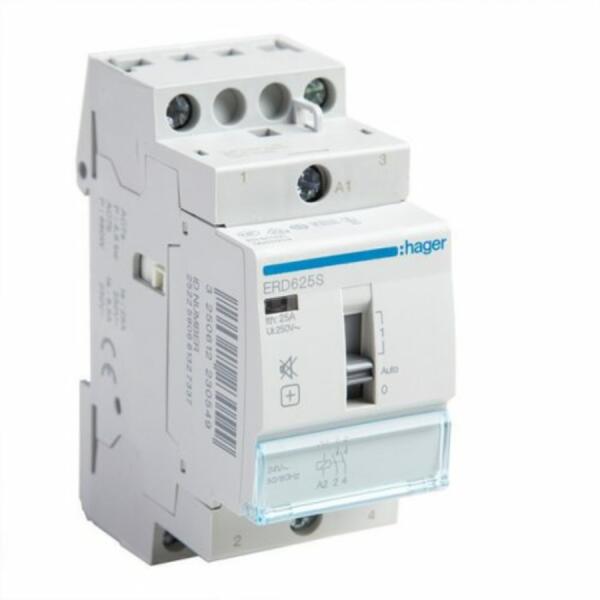 HAGER Csendes mágneskapcsoló, 2Z, 25A, 24V AC, I-0-II, moduláris, növelt kapcs. telj. (ERD625S)