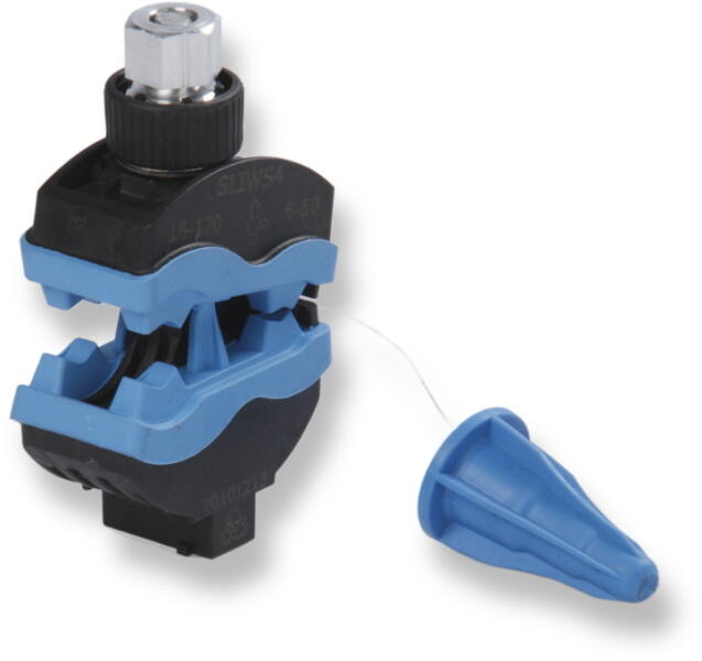 ENSTO Szigetelés átszúró csatlakozó, 16-120 mm2 / 6-50 mm2 (SLIW54) Terméki nformáció: A SLIW54 csatlakozó szigetelt alumínium vagy réz vezetékek összekötésére szolgál. Teszt feszültség 6 kV/50 Hz/1 perc vízben. A csatlakozó kivitele lehetővé teszi, hogy lekapcsolás nélkül, feszültség alatt szereljék, a szigetelés eltávolítása nélkül. Műszaki adatok: Fővezeték