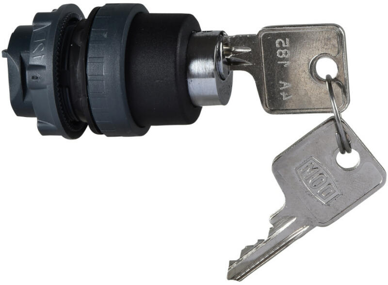 Harmony műanyag kulcsos nyomógomb fej, Ø22, 4A185 kulcs, minden pozícióban kivehető és zárható Schneider ZB5AFDA Harmony műanyag kulcsos nyomógomb fej, Ø22, 4A185 kulcs, minden pozícióban kivehető és zárható