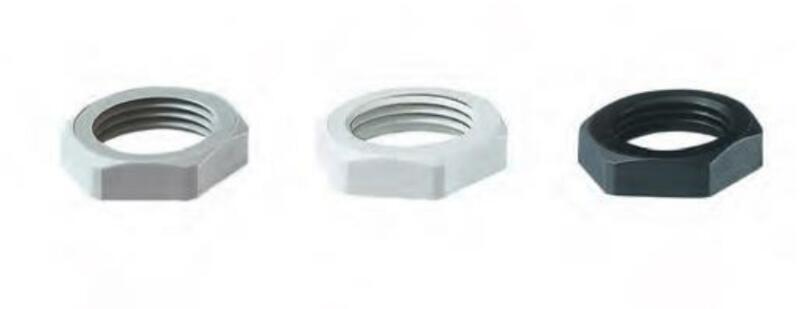 Hatlap anya anyaga: poliamid PA6 GF30, belső menet: metrikus (EN 60423), hőmérséklet tartomány: -40 °C / +100 °C