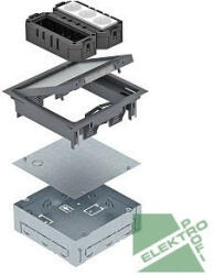 Obo bettermann 7427410 UDHOME GES4 7011 Padlódoboz 6 férőhely betonba komplett Négyzetes beépítő egység hat Modul 45 eszközhöz, száraz ápolású üreges padlókhoz és esztrich padlókhoz, beltéren. Beépíthető házból, GES4-2 szerelvénybeépítő egységből, két UT univerzális tartóból és egy hármas 33° -os földelt csatlakozóaljzatból áll, fehér színben. A beépíth