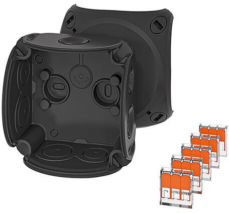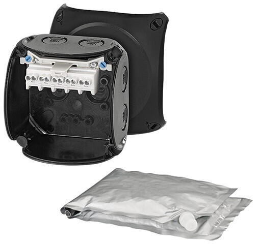 Hensel WP 0202 B kiöntőmasszával fekete vízálló kábelösszekötő doboz 0,75–2,5 mm2, Cu, 3~ Kapcsokkal 5 pólusú, pólusonként 8 x 0,75-1 mm2 r / f, 6 x 1,5 mm2 r / f, 4 x 2,5 mm2 r / f, 2 x 4 mm2 r / f Kábelbevezetés kikönnyítéseken keresztül, ASS-t külön kell rendelni (lásd: LES-kábelbevezető rendszerek fejezetben) Kábelösszekötődoboz kiöntőmasszához Földfelszín a