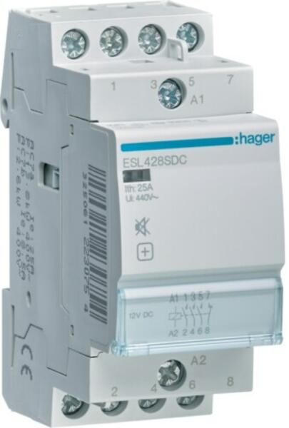 HAGER Csendes mágneskapcsoló, 3Z+1NY, 25A, 12V DC, moduláris (ESL428SDC)