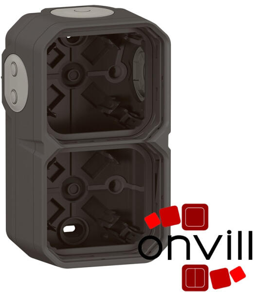 Plexo 55 - kettes falonkívüli doboz membrános kábelbevezetővel Falon kívüli szereléshez Kettes doboz Kivehető és átlyukasztható membrános kábelbevezetővel A kábelek a membrános kábelbevezetőn keresztül közvetlenül vágás nélkül bevezethetők Nyitott, elválasztás nélküli egyterű doboz, mely lehetővé teszi a gyors vezetékezés és az elővezetékezett csatlakozóaljz
