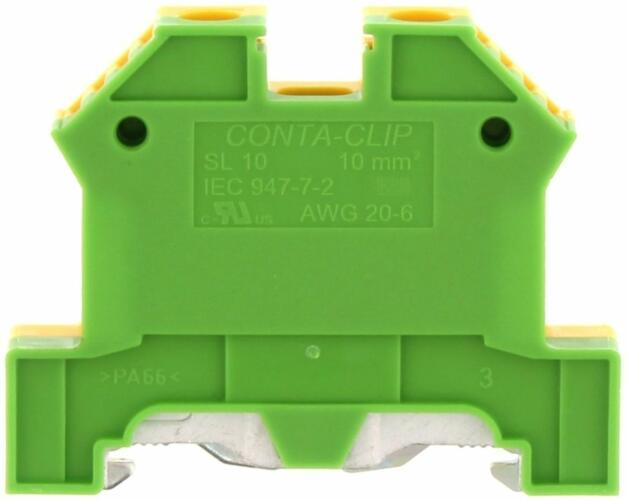Földelő sorkapocs 1-szintes 0,2-10mm2 zöld/sárga TS35 csavaros SL 10/35 GNYE CONTA-CLIP