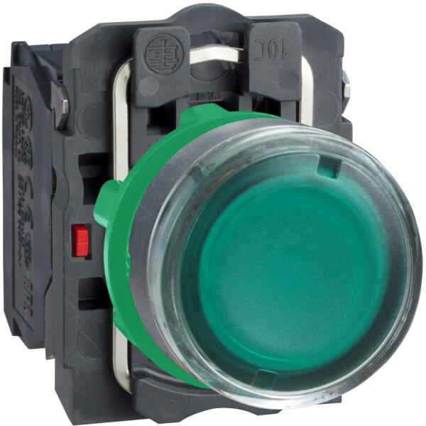 Harmony komplett műanyag BA9s izzós világító nyomógomb, Ø22, visszatérő, 1NO+1NC, 230VAC, zöld Schneider XB5AW3345 Harmony komplett műanyag BA9s izzós világító nyomógomb, Ø22, visszatérő, 1NO+1NC, 230VAC, zöld