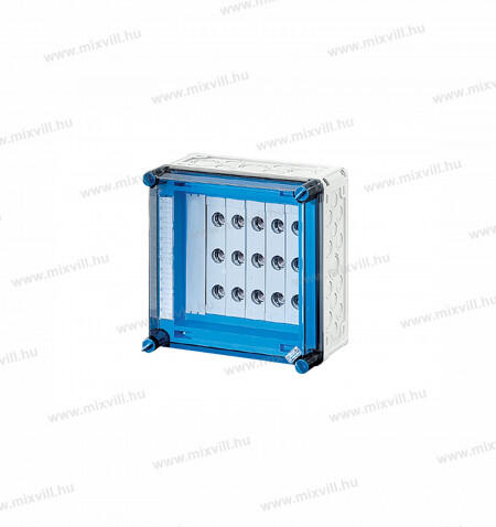 Hensel MI 73235 Neozed biztosítós doboz, szekrény 5x3x63A 300x300x170 MI73235 2000623 5 x 63 A sínre húzható biztosítóaljzat, 3 pólusú, A gyűjtősínek névleges árama 250 A D02 biztosítóaljzat, E 18, illesztőgyűrűs rendszer Csatlakozó kapcsok: 4–35 mm2, Cu, kerek vezetékek Leágazó kapcsok: 1,5–16 mm2, Cu, kerek vezeték, PE és N kapcsok: 4–35 mm2, Cu, kerek vezetékek