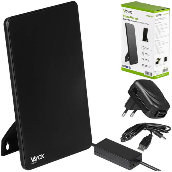 Leírás:Beltéri antenna erősítővel földi televízióhoz DVB-T/T2 aktív 4K erős VAYOX Az ergonómikus formájú antenna erős és modern kialakítása (magassága 20 cm, szélessége 13,5 cm) lehetővé teszi, hogy otthonunkban bárhol elhelyezhető . Erős hatótávolság a beépített aktív erősítőnek köszönhetően állandó 28dB és 100dBuV erősítéssel , valamint a 230V-on vagy
