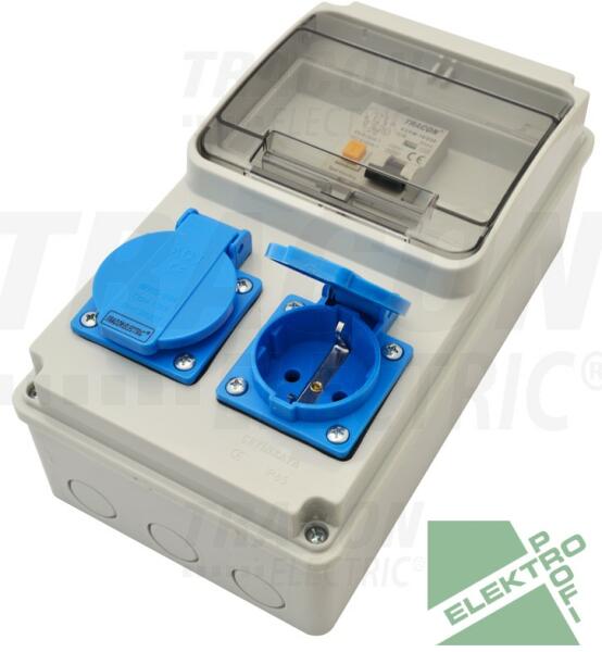 Tracon TDB02-6MV Csatlakozó doboz védelemmel 2 x 2+f Csatlakozó doboz védelemmel, vezetékezett, készre szerelt Prot. : RCBO, Out: 2×SCHUKO
