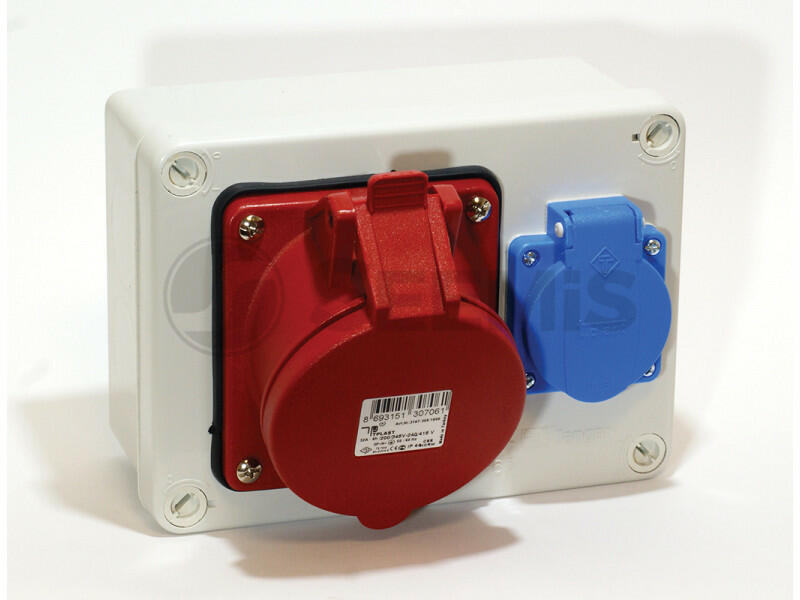 - Szerelt ipari doboz - Anyaga: ABS - Méret: 170 x 125 x 75 mm - 1x(2P+F) + 1x(5P32A) - Feszültésg: 230V - IP védelem: IP44 - Szín: szürke - Szerelt ipari doboz - Anyaga: ABS - Méret: 170 x 125 x 75 mm - 1x(2P+F) + 1x(5P32A) - Feszültésg: 230V - IP védelem: IP44 - Szín: szürke