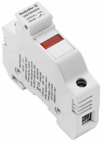 WEIDMÜLLER FUSEHOLDER WSFH 10X38 1KV LED Biztosítéktartó, 1000 V, 10x38, 1 sztring, LED-del (2827950000) Term ékinformáció: Fot ovoltaikus DC összekötő dobozokban való használatra, 1000 V-ig DIN sínre szerelt Hengeres biztosíték összekötőkkel való használatra, 1– 30 A-ig, 10x38 mm gPV esetén Adatlap letöltése