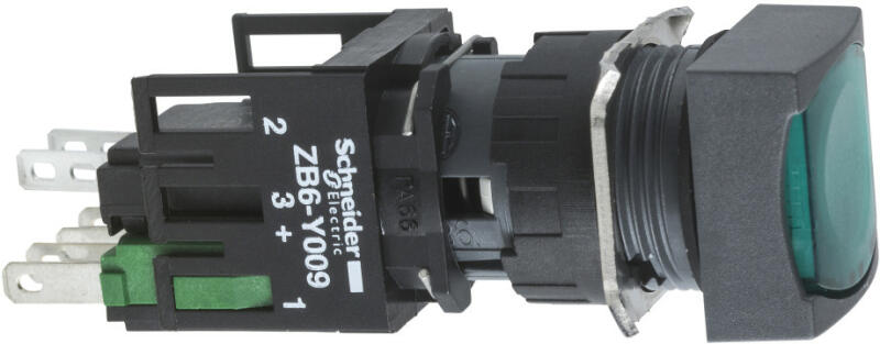Harmony XB6 Ø16 komplett világító nyomógomb, szögletes, zöld Schneider XB6CW3B1B Harmony XB6 Ø16 komplett világító nyomógomb, szögletes, zöld