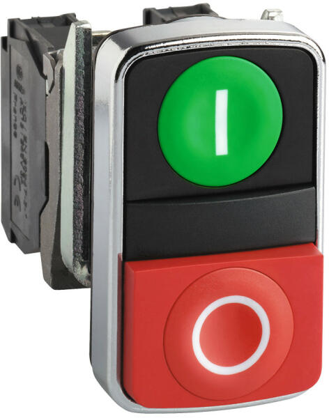 Harmony fém kettősfejű nyomógomb fej, Ø22, visszatérő, 1 zöld "I" 1 kiemelkedő piros "O" nyomógomb Schneider ZB4BA7341 Harmony fém kettősfejű nyomógomb fej, Ø22, visszatérő, 1 zöld "I" 1 kiemelkedő piros "O" nyomógomb