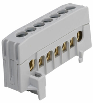 Sorkapocssín 63A szürke érintésvédett 1P csavaros 7csatl. /16mm2 kalapsínre A7-F2 Pollmann
