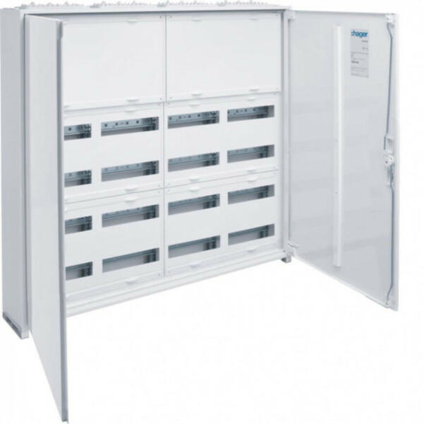 HAGER Univers mezős elosztó, falon kívüli, 300-mm-es felső sorkapocstakarással, maszkolt, IP44, 192M, N+PE, II. év. oszt. , 950x1050x161mm (FWB64N)