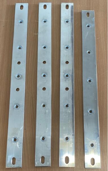 Kábelelosztó sín készlet Incobex leásható szekrényekhez (3 fázissín + 1 PEN sín) - 400mm (INCO-1000410221941) Termékinformáció: Kábelelosztó sínek Incobex SSTN 40x84/32 + FTN lakkozott leásható szekrényhez Anyag: Ónozott réz Műszaki paraméterek: Fázis onként 3db M12 beütő anya. Fázis felfogatás: 2x M10 304mm PEN sín felfogatás 2x M10 260mm Sín méret: 50x5 E-Cu 58 F