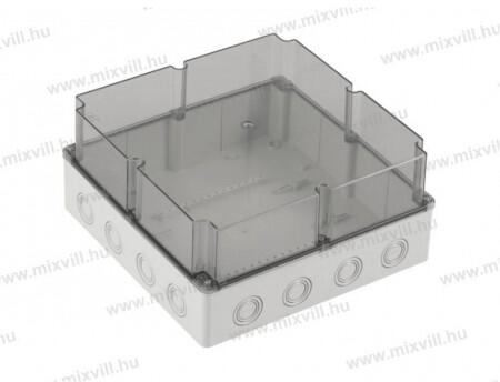 Méretek: 290x290x140mm 1db ø25mm és 1db ø32mm gumibevezetővel Színe: RAL7035 IP védettsége: IP67 Anyaga: ABS alj, PC tető Átlátszó, magasított tetővel