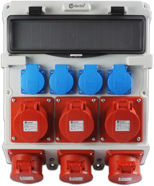 TP ELECTRIC Szerelt ipari doboz 300x340, IP44, 4x(2P+F)+3x(5x16A)+3x(5x16A), 14 modulos (TP-3620-400-0506) Termékinformáció: Anyaga: ABS Méret: 300 x 340 mm Előlapon: 4 x (1 x 16A) háztartási dugalj + 3 x ( 5 x 16A) beépíthető ferde aljzat Alsólapon: 3 x (5 x 16A) beépíthető aljzat IP védettség: IP44 Modulok száma: 14 modul