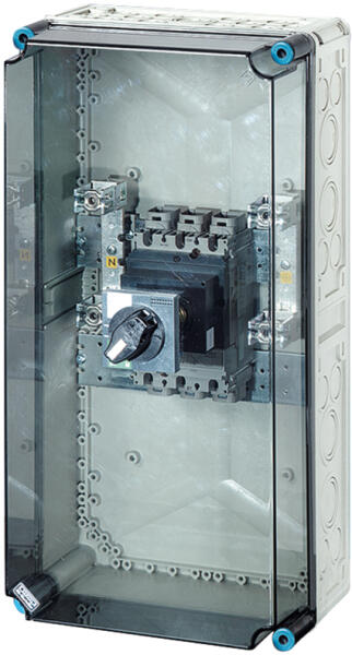 HENSEL Mi 7432 Mi megszakító szekrény (20001187) Termé kinformáció: Megs zakító 250 A 3 pólusú, PE + N Csatlakoztatás: 150 mm2 Cu, vagy Mi VS 250 PE- és N kapcsok rézvezetékekhez Túlterhelés i- és rövidzárlati kioldóval Fedélzárás szerszámmal Zárható kapcsolókar Az IEC 60947-2 szerinti megszakítóval Alapanyag: PC (polikarbonát) Érintésvédel mi osztály: II Színár
