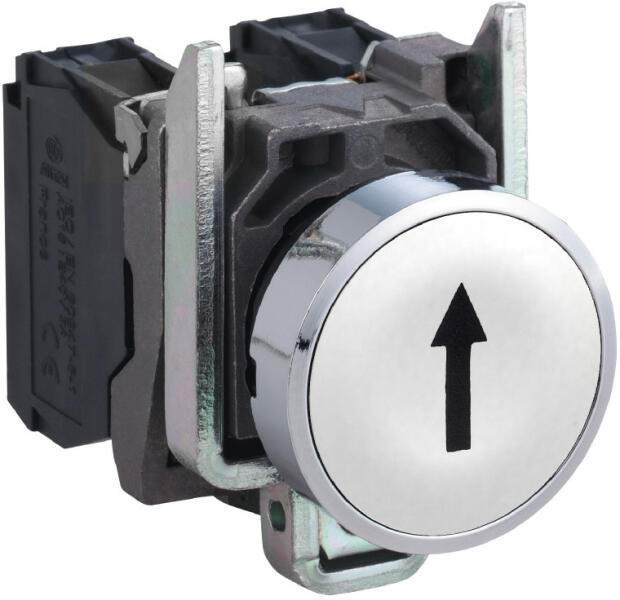 Harmony komplett fém nyomógomb, Ø22, visszatérő, 1NO, fehér, "fel nyíl" Schneider XB4BA3341 Harmony komplett fém nyomógomb, Ø22, visszatérő, 1NO, fehér, "fel nyíl"