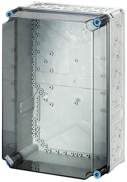 HENSEL Mi 0310 Mi üres elosztószekrény átlátszó magasított fedéllel (2000004) Termék információ: Beép ítési méretek: szélesség 275 x magasság 425 x mélység 195 mm Max. beépítési mélység: beépített szerelőlap esetén 191 mm, beépített kalapsínnél 180 mm 3-as szekrényméret Külön kell megrendelni a kalapsíneket, szerelőlapokat, takarólapokat Átlátszó fedél F