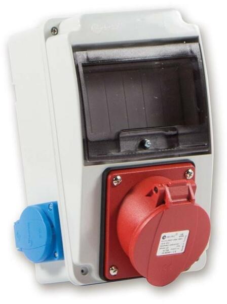 - Kombinált fali ajzat - Anyaga: ABS - Méret: 170 x 110 x 80 mm - Rögzítés mérete: 63,5 x 68 mm - Működtető feszültség: 380V - Előlapon alul: 4P16A aljzat - Előlapon felül: (2P + F ) háztartási aljzat - IP védettség: IP44 - 6h - Tömszelence beállás: M25 x 1,5 - Kiszerelési egység: 1 db / doboz