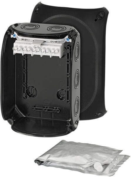 HENSEL WP 1006 B Vízálló kábelösszekötő doboz kiöntőmasszával, fekete (62000108) Termé kinformáció: 1,5 6 mm2, Cu 3~ Kapcsokkal 5 pólusú, pólusonként 6 x 1,5 mm2 r / f, 4 x 2,5 mm2 r / f, 4 x 4 mm2 r / f, 4 x 6 mm2 r / f, 2 x 10 mm2 r / f Kábelbevezetés kikönnyítéseken keresztül, ASS-t külön kell rendelni Kábelösszekötődobo z kiöntőmasszához Földfelszí n alatti te
