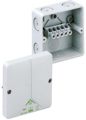 Csatlakozódobozok, Abox 040 - 42 IP65 Halogénmentes Ütés- és törésálló Csatlakozódobozok DIN IEC 60670 (VDE 0606) szerint. Ui=690 V, VDE bevizsgált. Jellemzők: Öntömítő, puha M20 bevezető membránok, tömítési tartomány 2 - 16 mm. Műszaki adatok: Kivitel: Csavaros kapcsokkal, 5 pólusú, 4 mm2-ig · Méret, hossz: 93 mm · Méret, magasság: 55 mm · Méret, szélesség: 93 mm