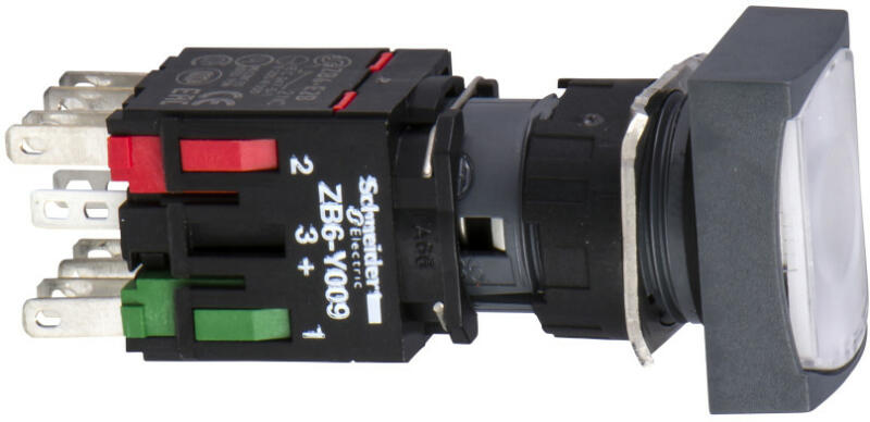 Harmony XB6 Ø16 komplett világító nyomógomb, fehér Schneider XB6DF1B5B Harmony XB6 Ø16 komplett világító nyomógomb, fehér