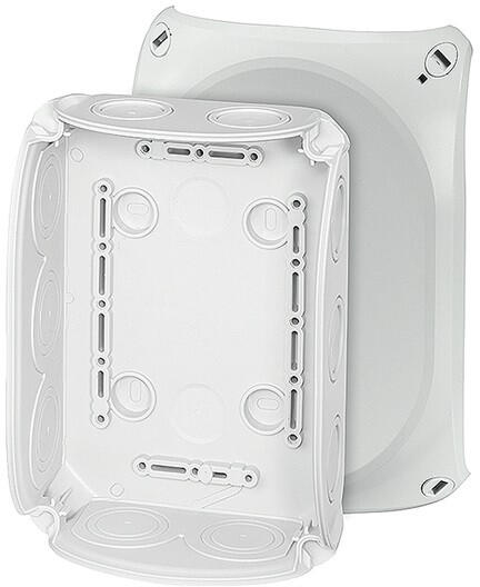 Termék részletekHensel DK 1000 GZ kábelösszekötő doboz Kapcsok nélkül Kábelbevezető tömszelencék alkalmazása esetén eltávolítható rugalmas tömítőmembránok, tömítési tartomány O 9,0–21,0 mm 2 db kábelbevezetési lehetőség a doboz alján, tömítési tartomány O 9,0–20,0 mm A fedélzáró segédeszköz nélkül plombálható Fedéltartó szál és fali rögzítéshez való külső fel