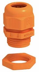 Robosztus tömszelence IEC 423 szerinti metrikus csatlakozómenettel, kalapos szorítóanyával és előszerelt ellenanyával. Húzásmentesítés, vezetékvédelem és tömítettség a teljes megfogási tartományban. Polikloroprén-/akrilnitrilbutadién-kau csuk tömítőgyűrű. Fröccsöntött formatömítés a közbenső csonkon, ezért nincs szükség csatlakozómenet tömítőgyűrűre. VDE