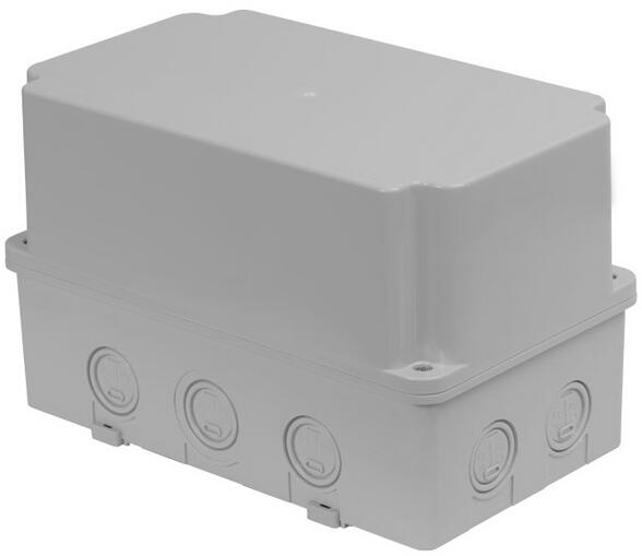 TP ELECTRIC Kötődoboz 130x220x140 IP67 magas tető, 8db kikönnyítés (TP-3310-218-0600) Termékinformáció: Kötődoboz, perforált oldalfalú Anyaga: műanyag Méret: 130 x 220 x 140 mm Csavaros, magas tető A tető rögzítéséhez szükséges fém csavar a tartozék része Külső rögzítési lehetőséggel IP védettség: IP67 A doboz kialakítása alkalmas DIN sínek és sorkapcsok tele