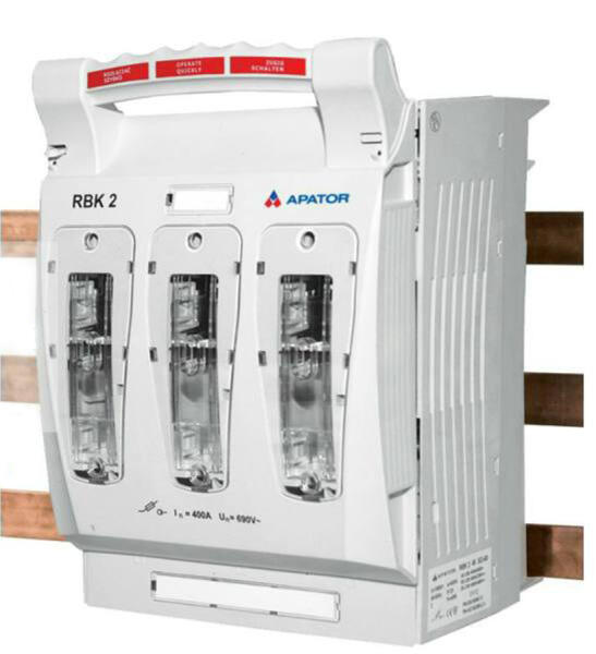 APATOR Szakaszoló, késes biztosítós, vízszintes, 3f. , 400A, . 100mm sínrendszerre, alsó bekötés, V csatl (63-811686-121)