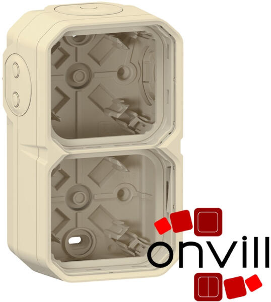 Plexo 55 - kettes falonkívüli doboz membrános kábelbevezetővel Falon kívüli szereléshez Kettes doboz Kivehető és átlyukasztható membrános kábelbevezetővel A kábelek a membrános kábelbevezetőn keresztül közvetlenül vágás nélkül bevezethetők Nyitott, elválasztás nélküli egyterű doboz, mely lehetővé teszi a gyors vezetékezés és az elővezetékezett csatlakozóaljz
