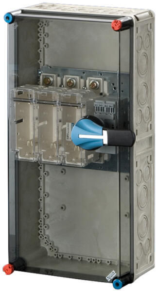 HENSEL Mi 7429 Mi biztosító kombinációs szekrény (1093385) Termék információ: Bizto sítós terheléskapcsoló (Fuserbloc) szekrény 1 x NH 1, 3-pólus MSZ EN 60947-3 szerint beépített készülékkel Kapocstartomány : M 10 / Mi VS 250 + VA 400 (a kapocstechnikát ld. a Műszaki adatoknál) M 10-es PE- és N kapcsok Zárható kapcsolókar Fedélzárás szerszámmal Plombálható Több sz