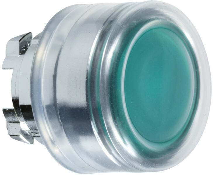 Harmony fém világító nyomógomb fej, Ø22, visszatérő, védősapkás, beépített LED-hez, zöld Schneider ZB4BW533 Harmony fém világító nyomógomb fej, Ø22, visszatérő, védősapkás, beépített LED-hez, zöld