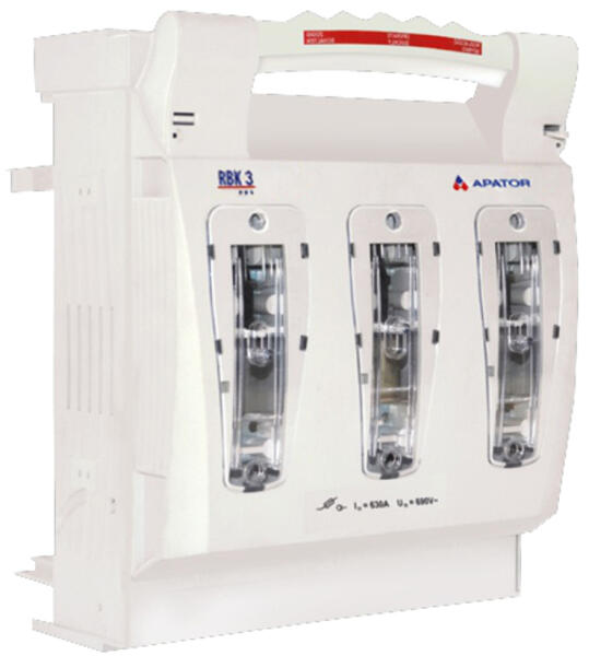 APATOR Szakaszoló, késes biztosítós, vízszintes, 3f. , 630A, 60mm sínrendszerre, alsó bekötés, "S" csatl. (63-028802-001)