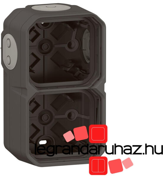 Plexo 55 - kettes falonkívüli doboz membrános kábelbevezetővel Falon kívüli szereléshez Kettes doboz Kivehető és átlyukasztható membrános kábelbevezetővel A kábelek a membrános kábelbevezetőn keresztül közvetlenül vágás nélkül bevezethetők Nyitott, elválasztás nélküli egyterű doboz, mely lehetővé teszi a gyors vezetékezés és az elővezetékezett csatlakozóaljz