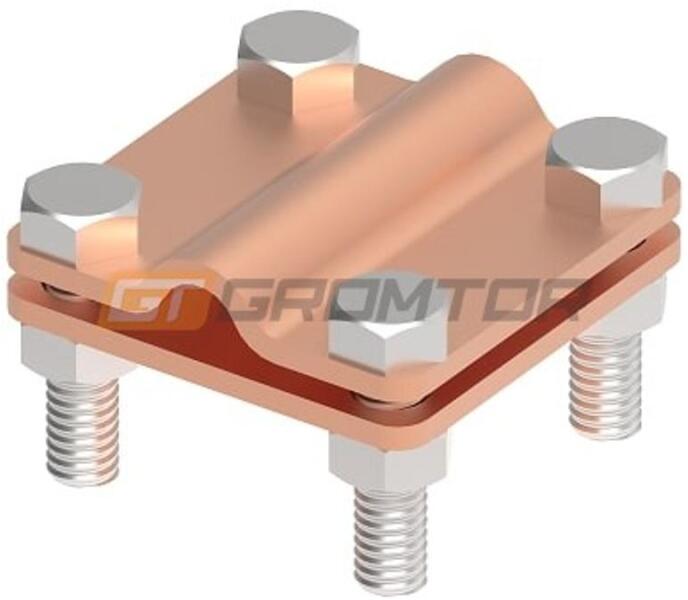 GROMTOR Keresztösszekötő köracélhoz és lapos vezetékhez L-55, réz (Cu) , 55x55 mm (101514) Terméki nformáció: Kereszt összekötő köracélhoz és lapos vezetékhez Anyaga: réz (Cu) Méret: 55 x 55 mm Köracél keresztmetszete: 8-10 mm Vezeték mérete: