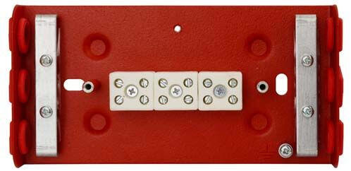 tűzálló kötődoboz, 154 x 80 x 30 mm, IP20, tűzálló fém, tűzjelző rendszerekhez, sorkapocs, tűzálló, piros